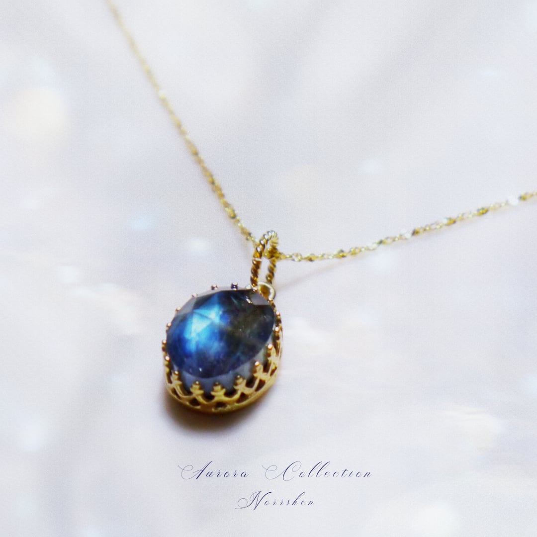 「Norrsken《ノルフェーン》」 ラブラドライト 大粒 14Kgf 真鍮 ネックレス 水晶 オニキス